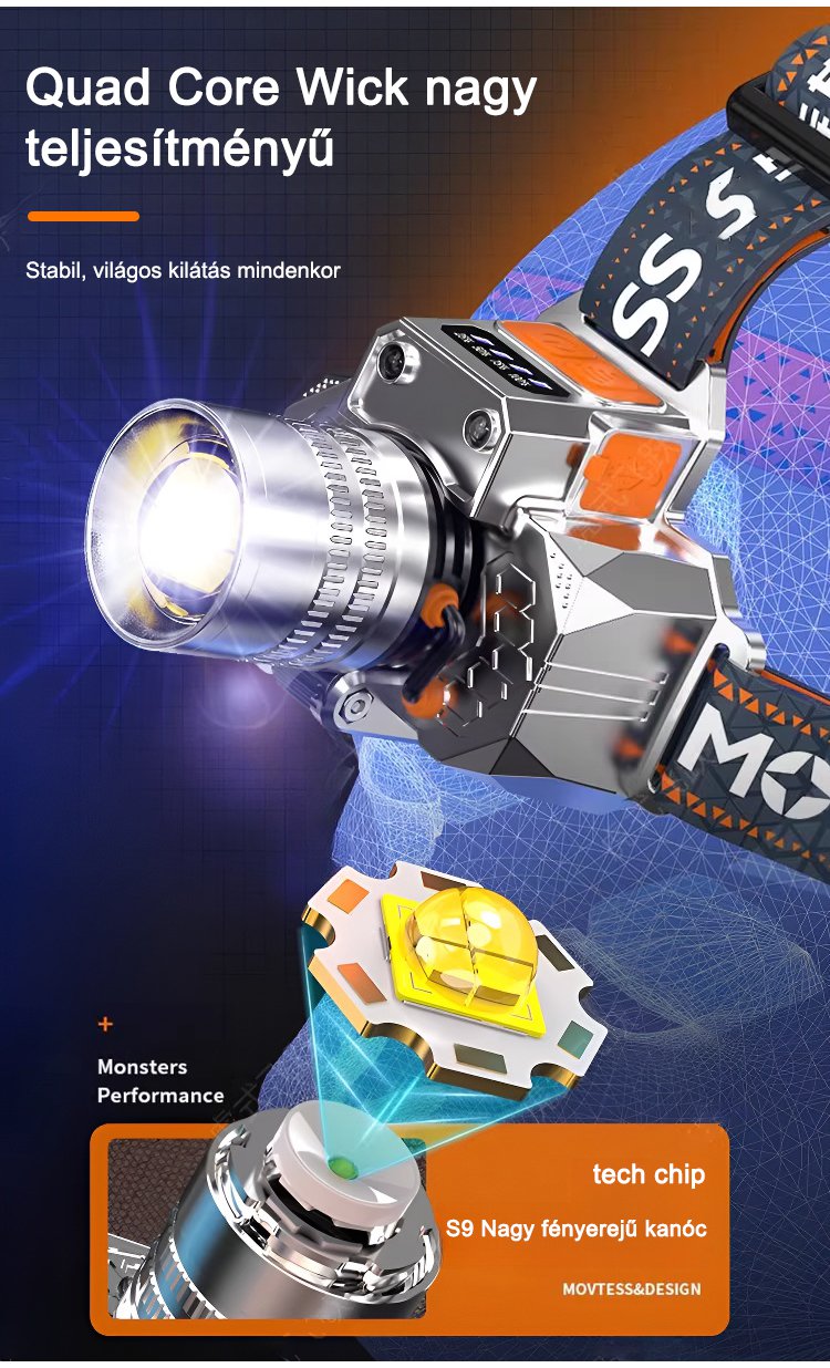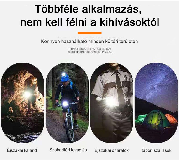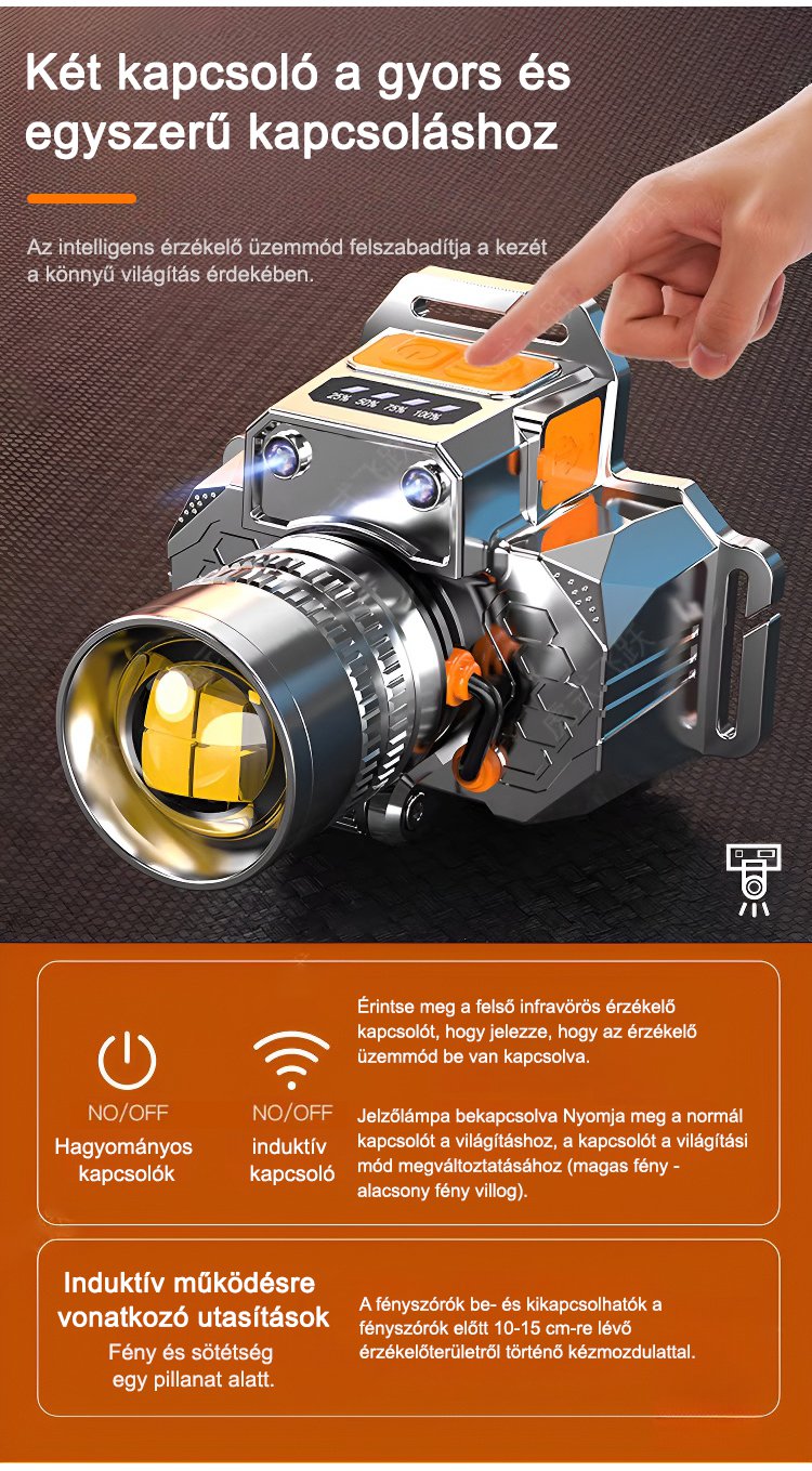 Fejre szerelhető érzékelős zoom zseblámpa
